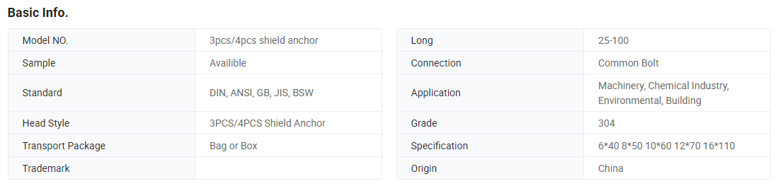 Heavy Duty 3PCS/4PCS Shield Anchor Segments Expansion Anchor for Concrete